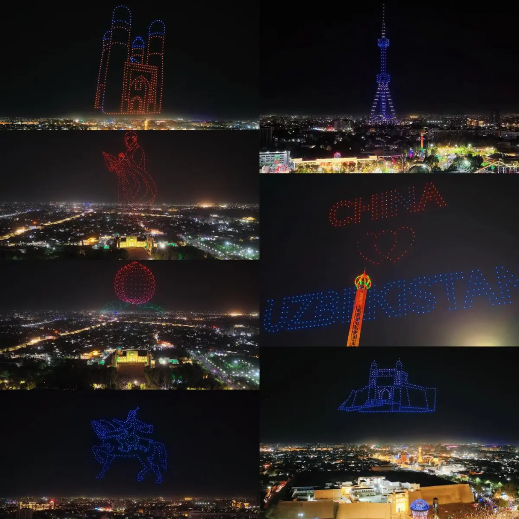 Tashkent (Aug 20): The drone formations displayed “Silk Road Journey,” a 3D route map, and landmarks such as the Tamerlane statue and Tashkent TV Tower, culminating with the words “CHINA” and “UZBEKISTAN” linked by a glowing heart.